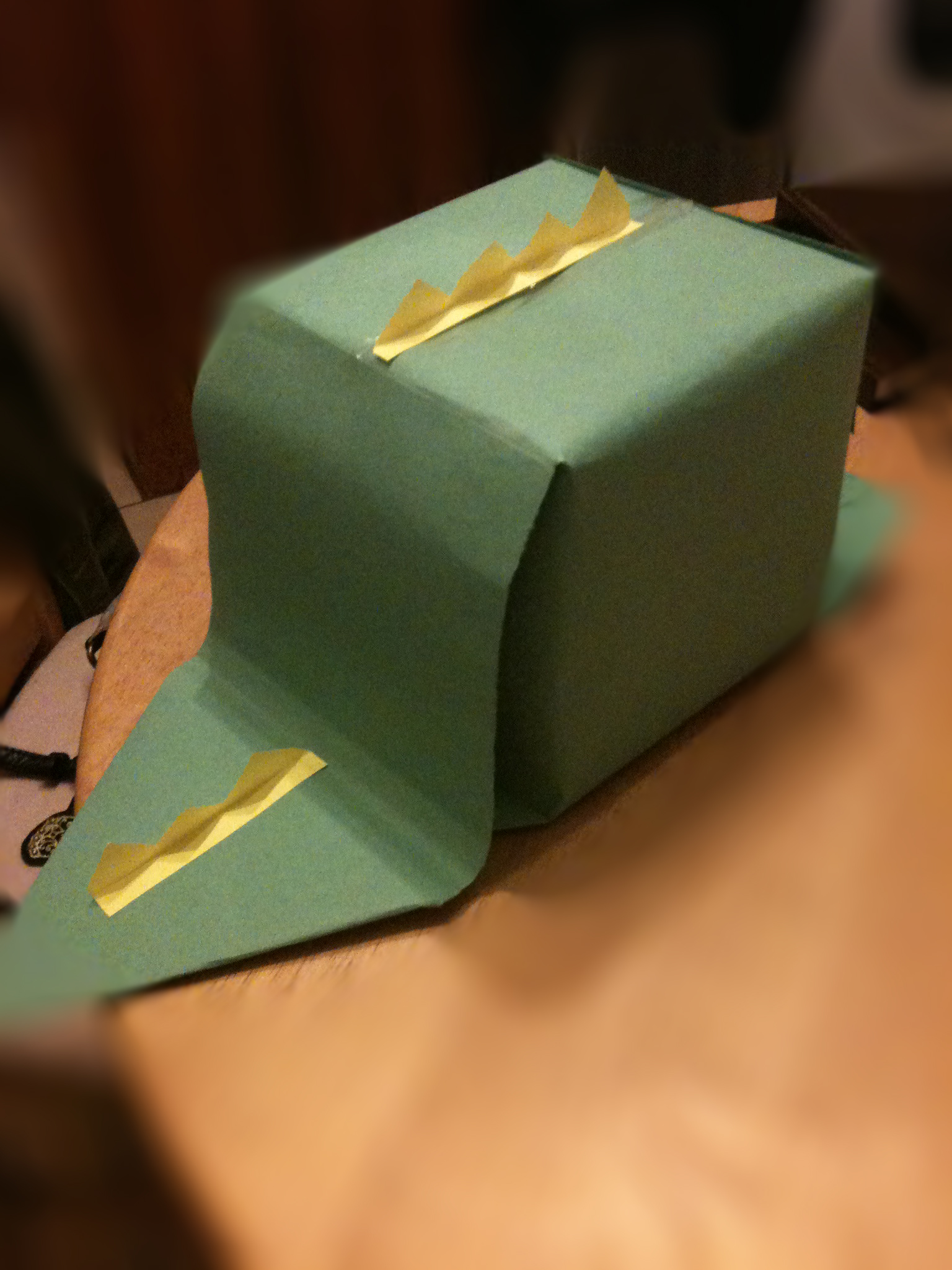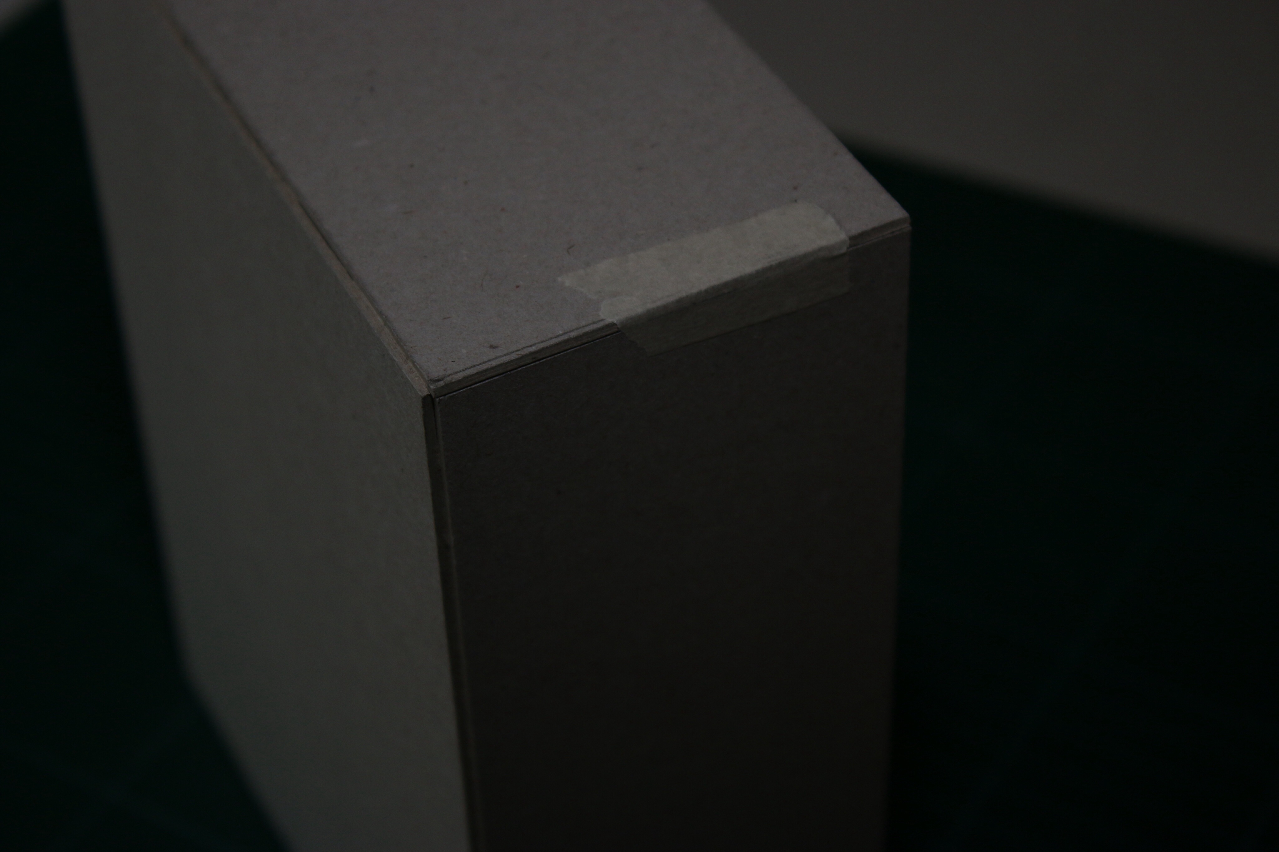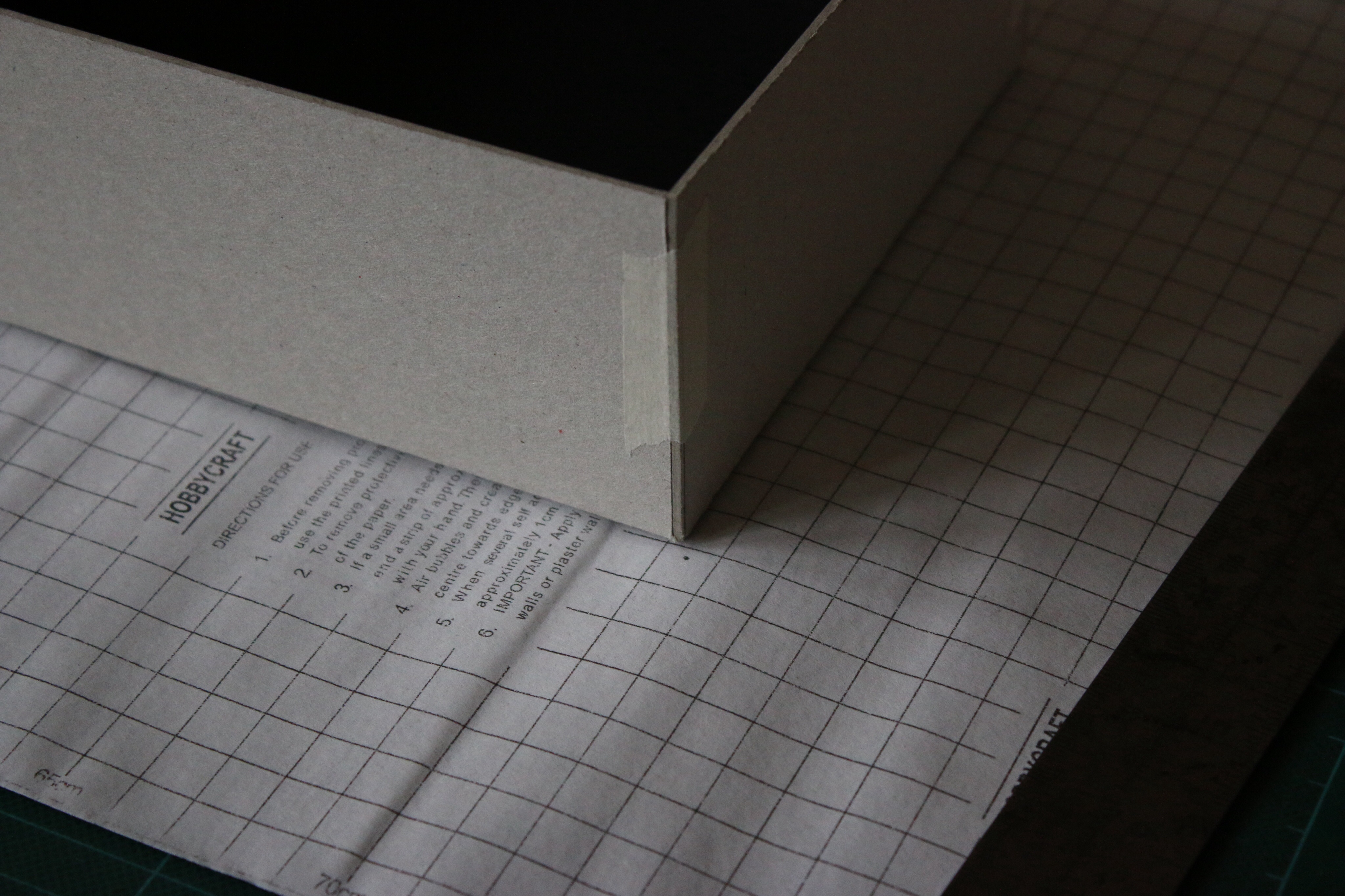 Taking some neat lengths of masking tape, fold up the sides and join them together like a but joint with the shot edges overlapping the long edges. This will form the main structure of the box so it’s important that the tape is firmly stuck.
