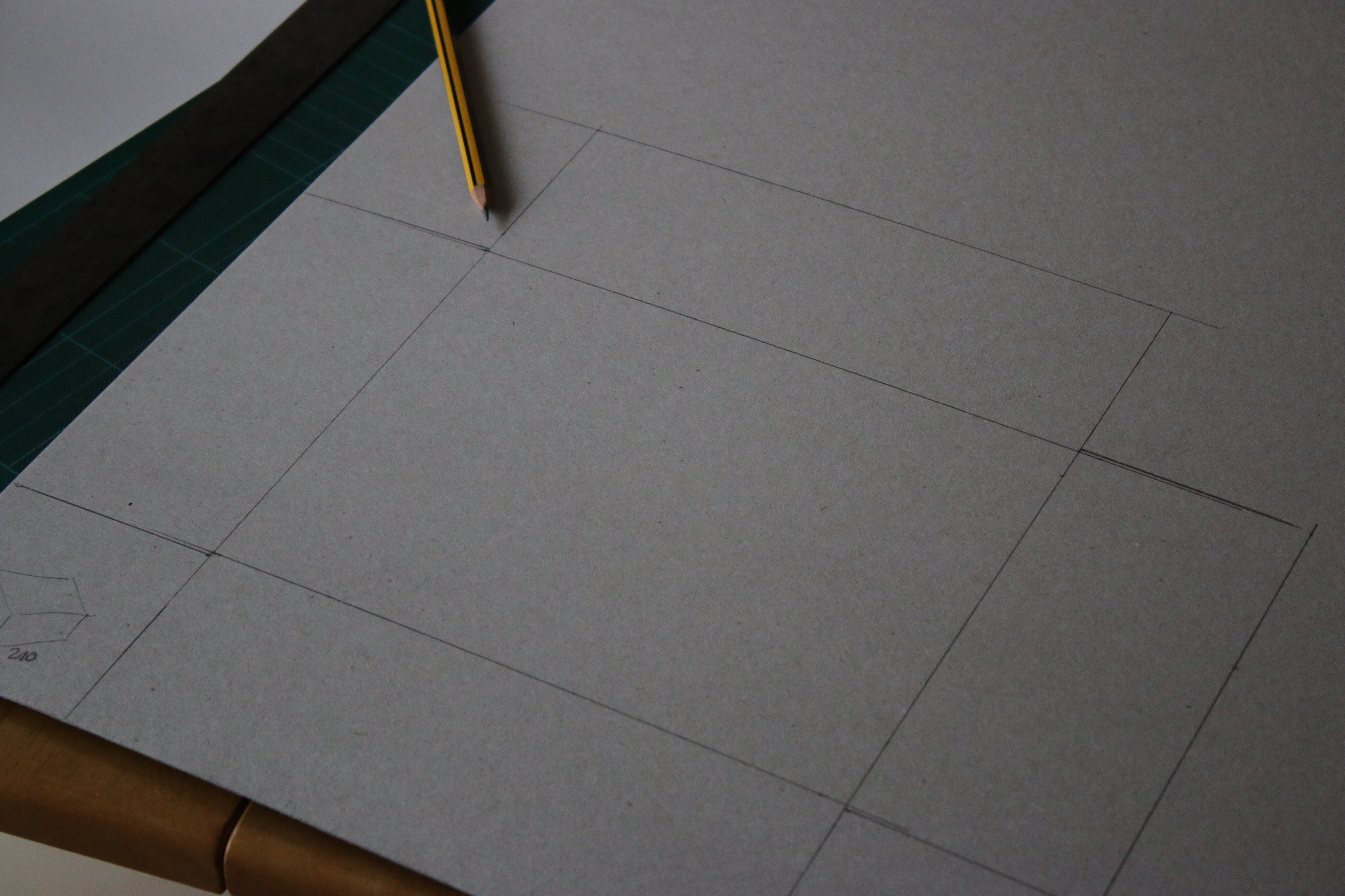 I like to use the edge of the board to keep my lines square. Start by drawing the base panel offset from the edges by the depth of the box.